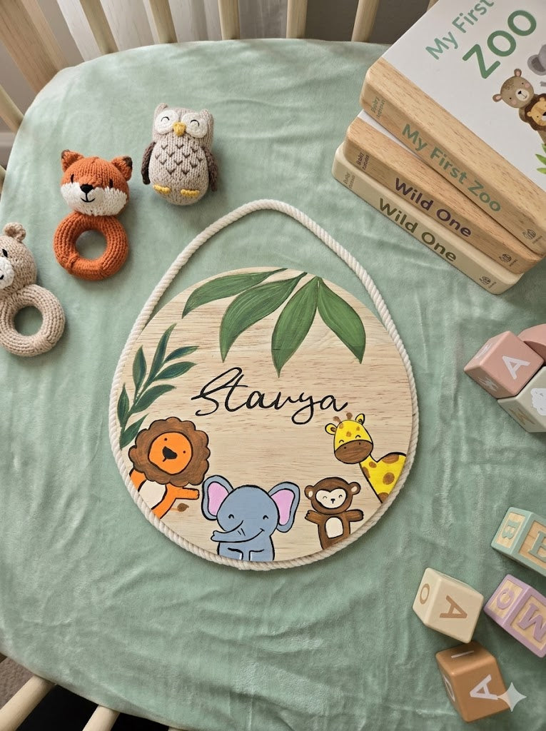 Make your child’s space truly their own with this hand-painted wooden nameplate, thoughtfully designed to reflect their personality and love for nature and animals. Each piece is lovingly painted by hand, making it a unique and charming addition to bedroom doors, study corners, or play areas.
